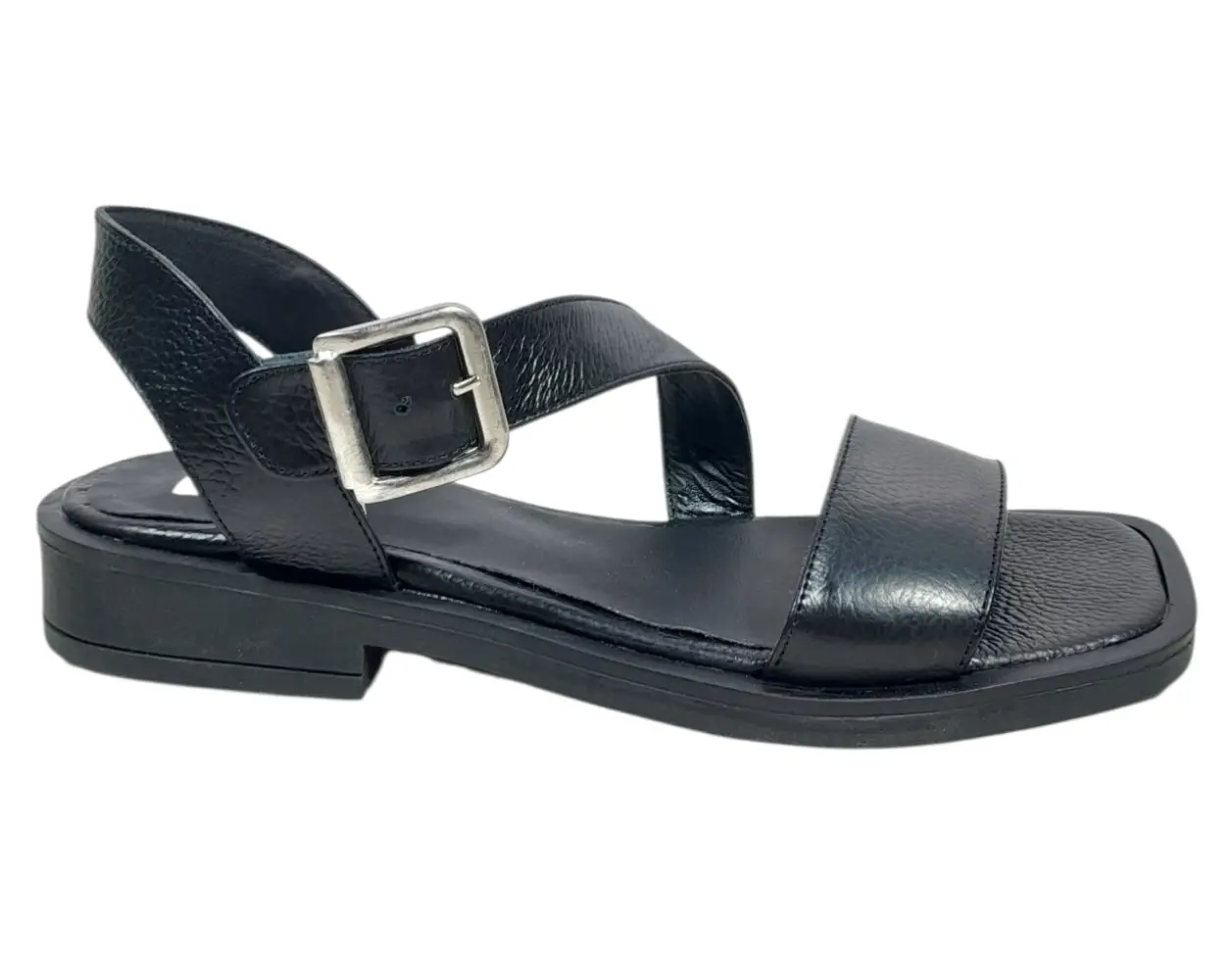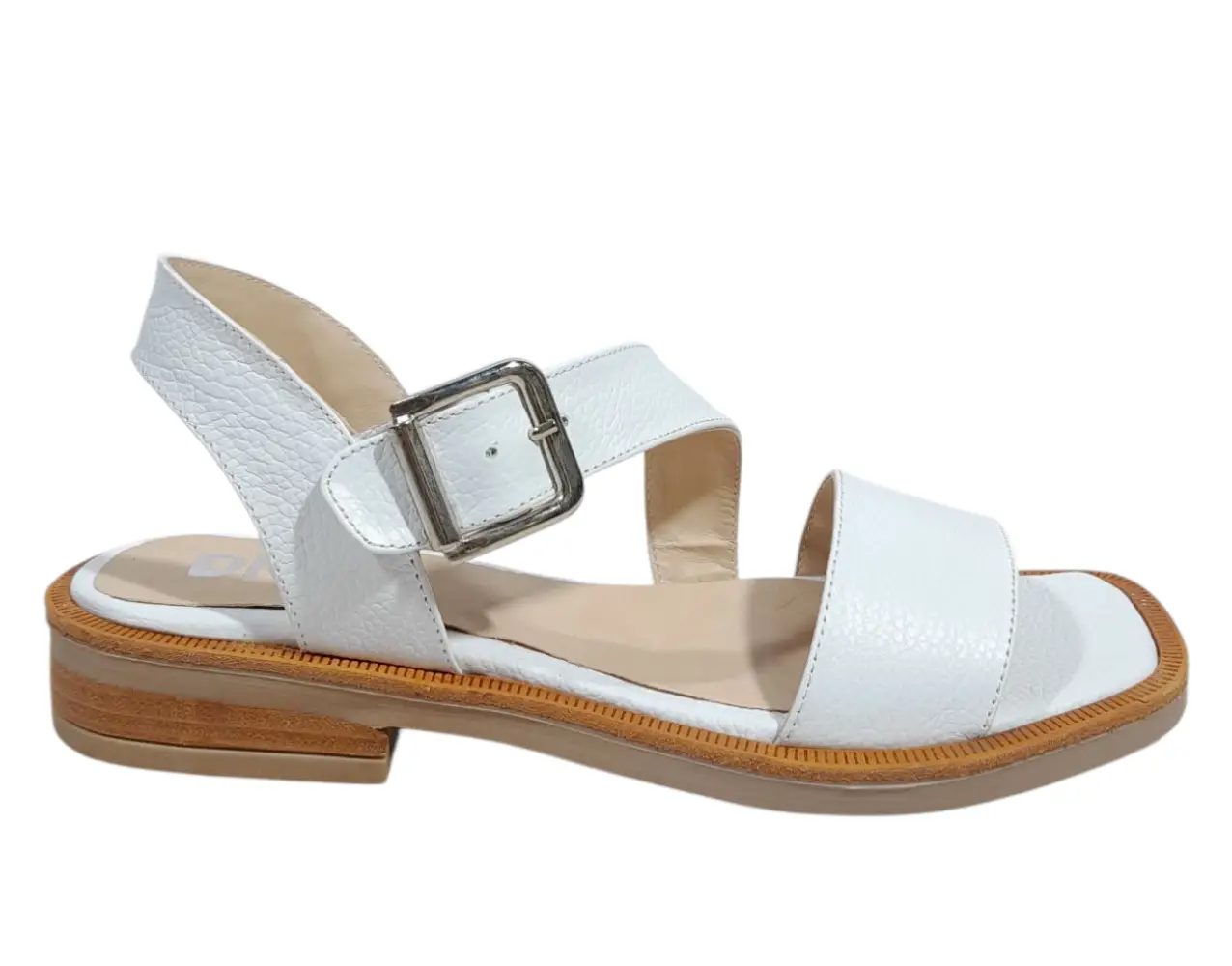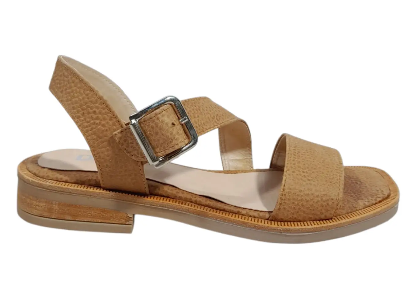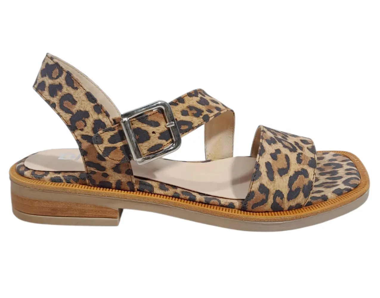 Sandalia de cuero con suela de goma y taco folia bajo