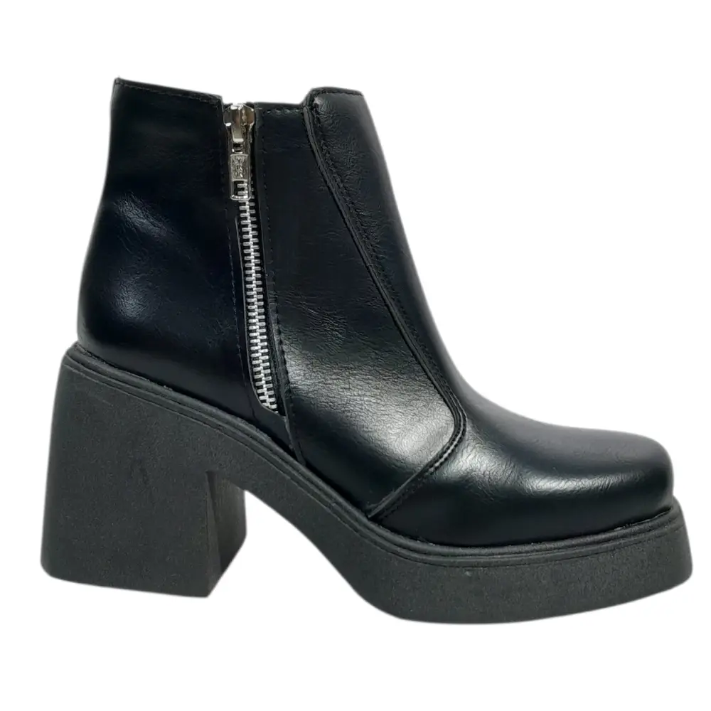 bota caña corta, eco cuero, boble cierre, taco cuadrado y plataforma